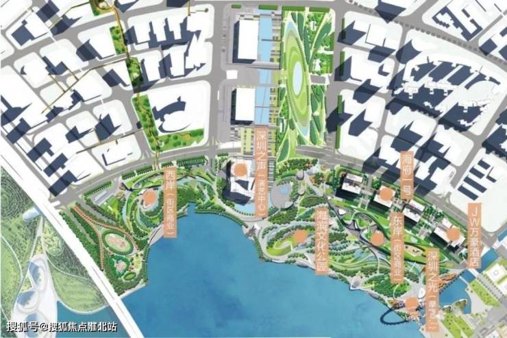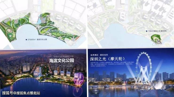 项目占地约3.4万㎡,建面约9.8万㎡,由4栋海景企业会馆、3栋总部生态办公、1栋约2400㎡三层独栋商业组成,其中总部生态办公和独栋商业整售。项目享有城市综合配套:约27万㎡海滨文化公园,约2万㎡演艺中心(湾区之声),约128米高摩天轮(湾区之光),约8万㎡滨海街区商业和约1万㎡JW万豪酒店。海滨文化公园预计将于2020年5月正式对外开放。