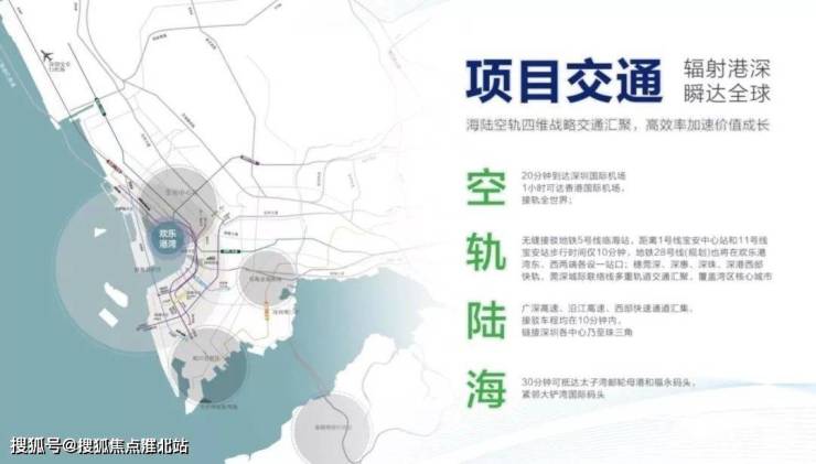 项目位于宝安中心区,由华侨城集团出资100亿打造的欢乐港湾项目内,临近北环大道与滨海大道,接驳5号线、11号线、1号线三轨交汇,占据前海封面。