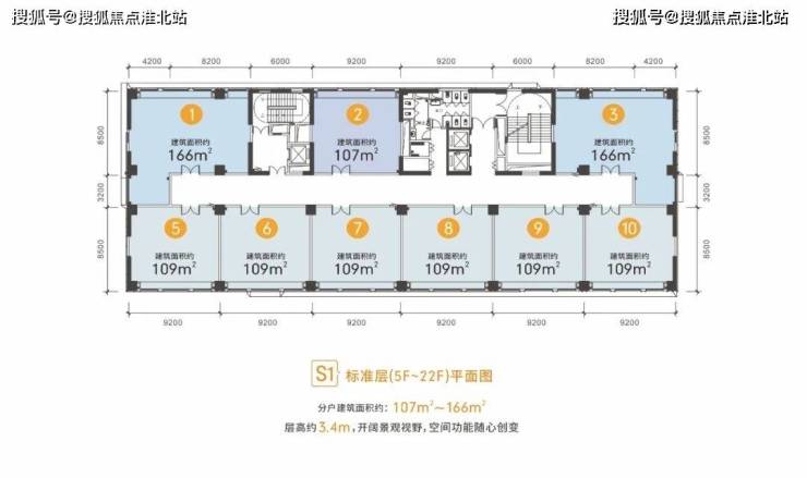 建筑面积约97-197㎡阔景平层,层高约3.4米,灵动空间随心打造;