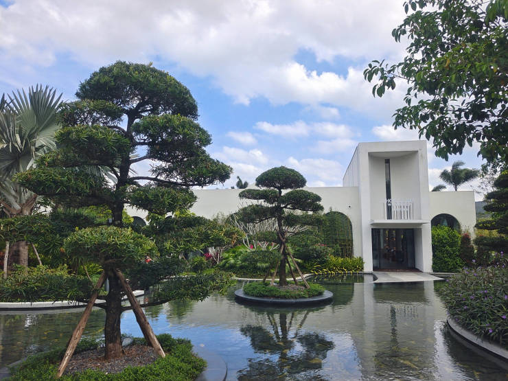 建筑规划:小区建筑采用现代极简主义设计,搭配 5 重热带园林景观。住宅产品为纯地上 2-3 层的合院别墅,田字形合院布局,每一户都是边户,双面采光,独门独院。