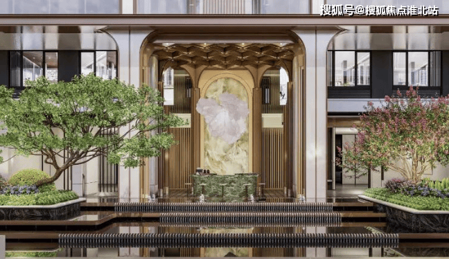 约55米宽森奢酒店式门厅,超流体华丽的厅檐勾勒艺术天际,弧形艺术普拉达绿奢石,香槟金艺术格栅,铺陈高贵典雅的归家礼序。门前开阔的广场,设置环岛落客水景,营造出静谧雅致的氛围,让每一次归家都成为一场心灵的洗礼。