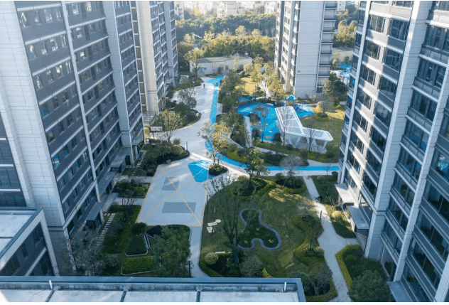 学院派园林:以“一轴两环多点”布局,打造约4000㎡中央大景观、600m阳光大草坪及250米环形跑道,绿化率高达40%,融合自然与人文景观。