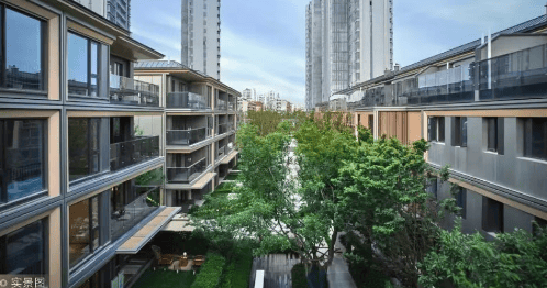 东城高层区承袭中国古典建筑以中轴对称为骨架的法则,围合形成独立的组团空间,重塑老城的地标与天际线衬托“整齐严肃、有条不紊”的视觉感受,回归宁波巷道水岸情怀 ;西城多层区域两面水系环绕,打破了空间的界定,尽享景观资源,实现了人对于“繁华都市”到“景观资源”及庭院空间的完全占有。