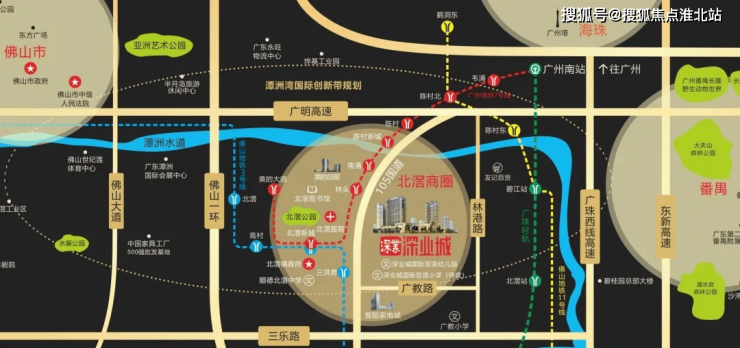 佛山地铁3号线,北滘公园及广教站距项目10分钟步行距离,预计2022年10月试运营;