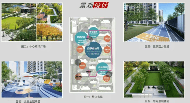 社区园林:小区内绿化率达 38.85%,配备中央草坪、健康跑道、儿童主题乐园及榉树香樟林。