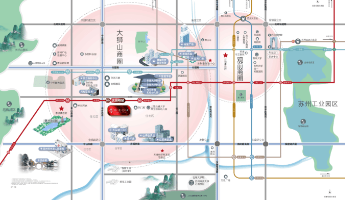 快速路网:毗邻中环西线、苏福快速路,30 分钟左右可通达苏州工业园区及姑苏核心区。