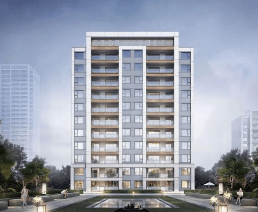 建筑规划:项目由 8 幢高层(总高 27 层)和 8 幢小高层(总高 11 层)组成。