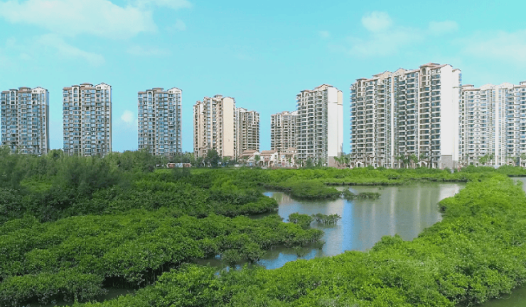 开发商富力集团(大型房企);70 年住宅大产权,含高层洋房 + 联排 / 独栋别墅;总占地超 8000 亩,其中核心红树林湿地约 2200 亩,是超大体量的成熟社区;已全面现房(2026 年 3 月可实地看实体房、园林、湿地公园景观),多数组团早就交付入住,即买即住即办证;物业公司为广州天力物业发展有限公司(富力自持);物业费高层约 2.5 元 /㎡・月,别墅更高;社区人车分流,主干道 + 高速互通便捷,自驾去那大城区、海口、洋浦港区顺畅;核心亮点是2200 亩红树林湿地公园 + 4.2 公里木栈道 + 火烈鸟岛 + 湿地体验馆,生态资源稀缺,负氧离子浓度高。