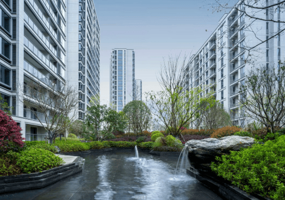 林语沁雪里紧邻城市生态水系,园区内部又蕴藏着丰富的园林景观。前期规划阶段,就融入了以桥作路、以林作坪、以堂作域、以溪作趣的设计理念,根据建筑布局呈横向轴线分布,取东方庭院的轴线礼序与三重庭院布局,设置了水院礼仪、林下休憩、组团花园三大功能庭院,打造了独特的人居景观。建筑、园林、水系交相呼应,多元化的景观空间布局,彰显着荣安对美好人居生活方式的思考与升级