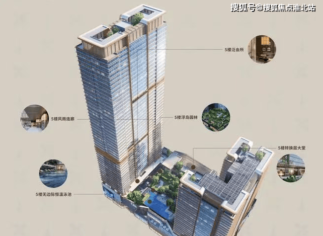园林景观:打造约 2.5 万㎡立体园林,循迹世界名石与名木,设有池边酒咖、廊下社交、中央会客三大会客场域,还有室外无边际恒温泳池,以梵高《星空》为底色。
