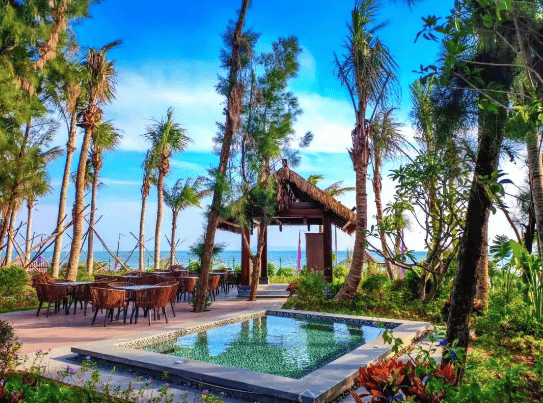 自然环境优美拥有1.2公里原生态私属海岸线,离海仅158米,沙滩细腻柔软,海水清澈碧蓝。周边被茂密椰林环抱,空气清新,负氧离子含量高达12万个/cm³,是全国罕见的高负氧离子区域,对心脑血管疾病有显著缓解作用。