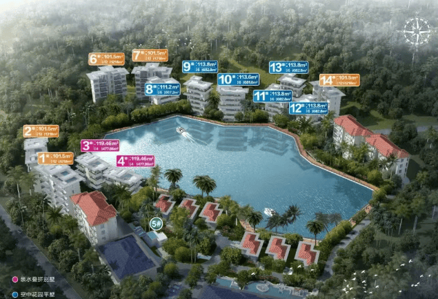 基本信息:位于海南省万宁兴隆旅游度假区,由飞达地产集团有限公司开发。总占地 13,623.75 平方米,总建面 11,620 平方米,容积率 0.8,绿地率 40%,住宅共有 105 套房源,车位配比为 1:1。