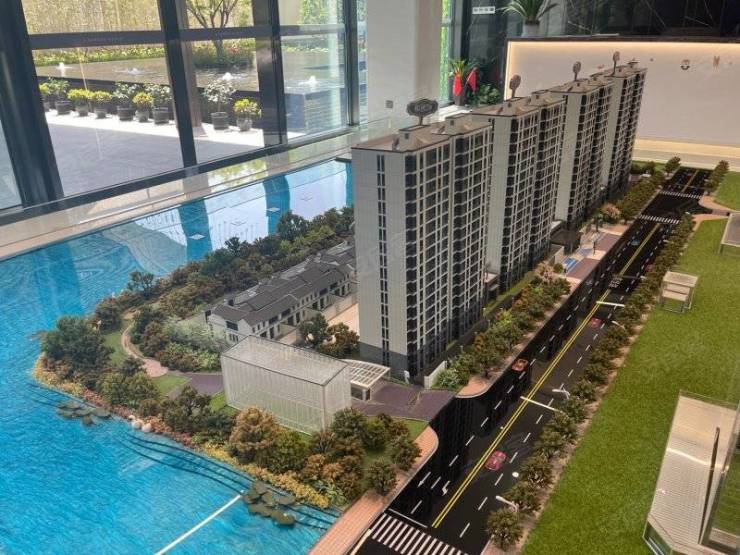 整体布局:全园呈南低北高布局,南面梅墅江畔为新中式院墅,北面是现代高层,最大程度满足户户观江需求。