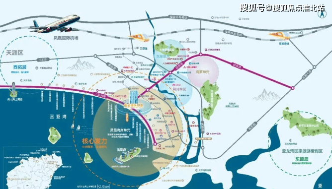 交通配套:紧邻城市主轴迎宾路、三亚湾路,距凤凰岛国际邮轮港约 2.9 公里,距三亚高铁站约 5.4 公里,距三亚凤凰国际机场约 11 公里,拥有海陆空港多维、立体交通体系。