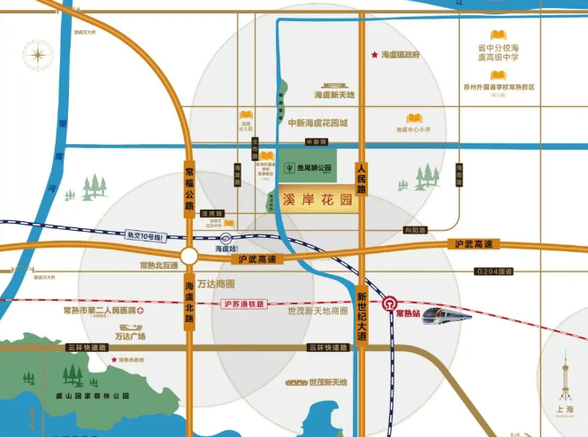 教育配套:直线 3km 范围内有 4 个幼儿园,1 个小学即常熟市海虞中心小学,3 个中学包括常熟市海虞高级中学、常熟市海虞初级中学、江苏省常熟中学分校。还有优质民办学府苏州外国语学校常熟校区。