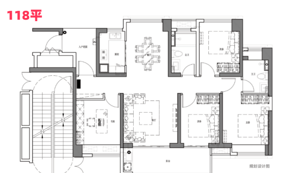 建面118㎡:南北对流四房单位,阳台宽达5.5米,连接次卧,整体空间感更佳,南向可欣赏到江景及奇槎体育中心,尽管可能会受到一些噪音影响。