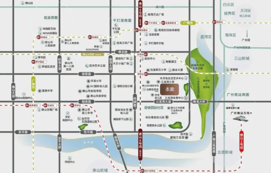 除了现有的道路交通网络外,虽然当前距离最近的地铁站点较远,但未来规划中的四号线石啃站和六号线奇槎站将显著改善公共交通条件。通过桂澜路、南海大道和三龙湾大道等主干道,驾车出行至桂城、禅城中心乃至广州都非常方便快捷。