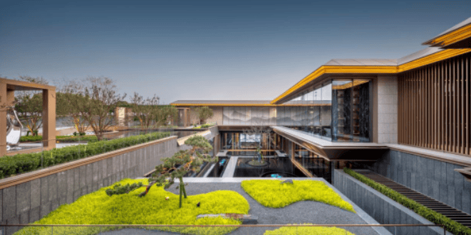 园林景观:打造了 3 大花园组团、10 处景观生活场景,全冠移植树木植被,形成多重景观组团。