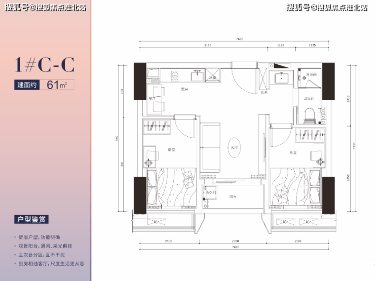 项目约61㎡/68㎡两房一卫户型正在热销,可满足青年情侣、三口之家等多种人群的居住需求,覆盖人群非常广。