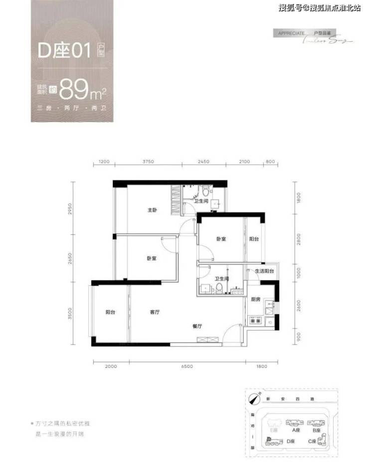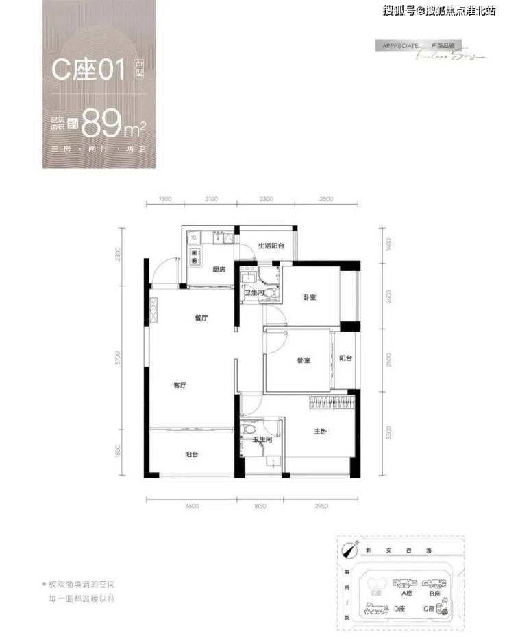 约89㎡精装3房,刚需改善性价比之选:东南/西南朝向