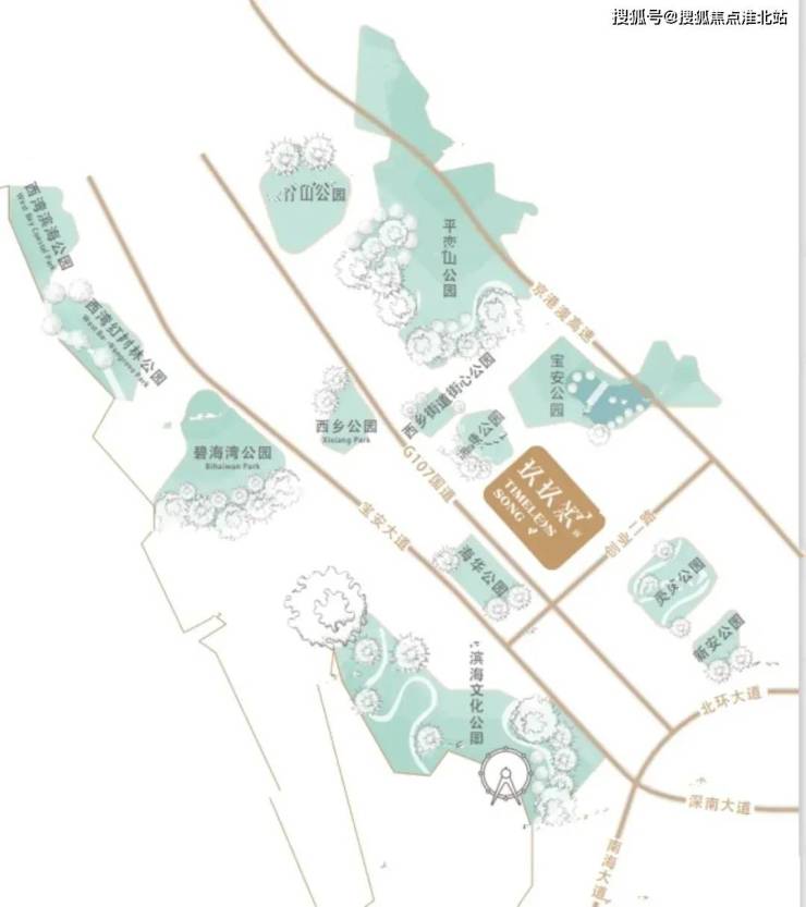 13大公园环绕,户外休闲便利,项目周边配备13大公园:流塘公园、宝安公园、碧海湾公园、西乡公园、灵芝公园、新安公园、滨海文化公园等,项目距离宝安公园直线距离仅1.5公里,距离流塘公园直线距离仅607米,出入公园环绕,宜居属性高