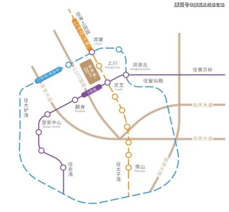 家门口的双地铁,半小时通达全城项目距离12号线上川站F2出口约100米;距规划中15号线(流塘站)约700米;北环大道、G107国道、宝安大道在侧,半小时通达全城。
