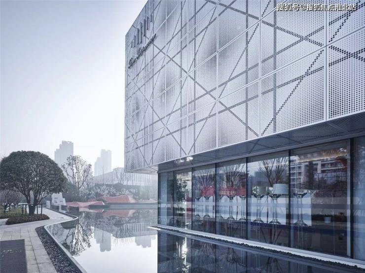 当灯光亮起,售楼部成为夜幕里的最明亮的星辰画卷,又仿佛是一个精美的礼物盒子,等待着被人打开,收获惊喜。精致的编制纹理随着灯光的渐变,与水面的倒影一同协奏出黑夜的奏章,打造出奢侈品店般的大牌质感。