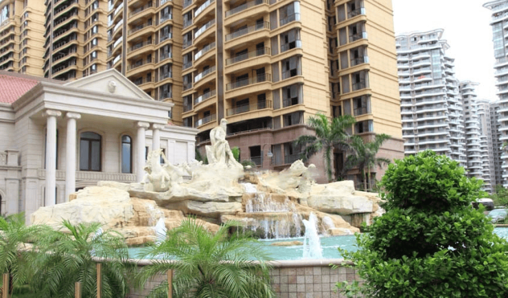 开发商 / 物业:海南金洋房地产开发有限公司(北京佳隆集团旗下);康辰物业(物业费2.88 元 /㎡/ 月);24 小时安保、人车分流,中央欧式园林 + 水景,罗马许愿池、中心广场等景观