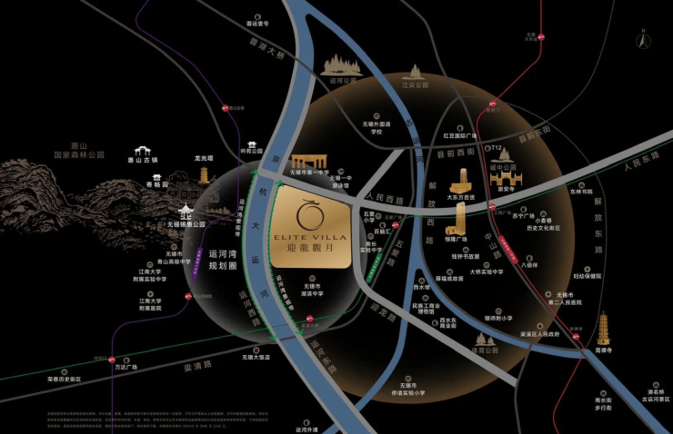 项目所处的梁溪区,作为无锡经济、文化、金融的核心腹地,资源密度首屈一指。地理区位上,这里承接“龟背价值主轴”人民路与“主城豪宅群落金线”迎龙路的双重利好,迎龙路的命名更源自迎接乾隆南巡的历史渊源,文脉底蕴深厚。