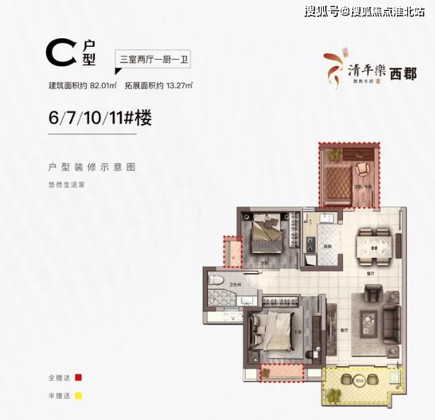主打户型:项目主打超高得房率户型,约 82 平方米的户型赠送 13.27 平方米,可打造为三房两厅一卫的舒适空间;约 99 平方米的户型赠送 17.11 平方米,可实现四房两厅两卫的宽敞布局。
