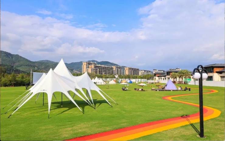 社区:约 2 万㎡地球村露营公园、520m 彩虹慢步道、共享农庄、泛会所、儿童游乐区。