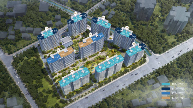户型信息:项目规划有建筑面积约 103-143㎡的改善户型,层高最高约 3.05m。主力户型包括建面约 103㎡的三房两厅两卫、119㎡的四房两厅两卫、126㎡的四房两厅两卫和 143㎡的四房两厅两卫,均为南北通透、双景观阳台、南向多面宽设计。