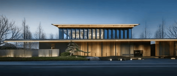 建筑设计:采用台地式建筑布局,实现户户观山景。以宋冠翅帽檐、玉带铝板腰线、全景落地窗,打造对称布局、横向韵律、直角线构的宋风极简立面,重现东方审美意蕴。