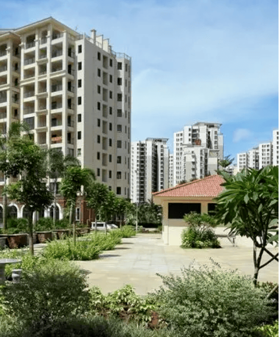 园林景观:利用约 8 米地形高差打造台地园林,由低到高形成草坪、花卉、小灌木、小乔木、大乔木的五重立体景观,错落排布,四季有花,结合南高北低地形布局形成扇形超大景观视野,人均可使用景观面积远高于行业水平。
