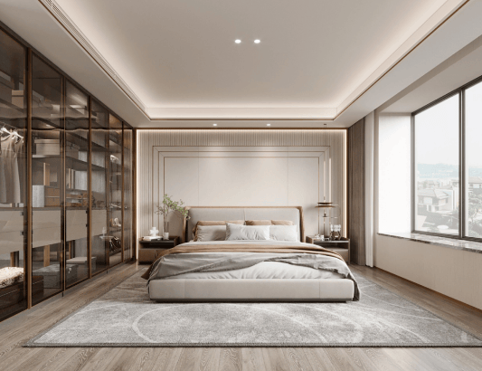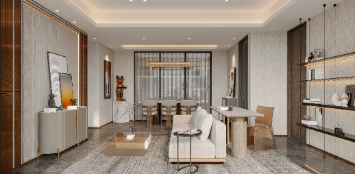 空间设计:叠墅采用上下叠独立归家动线,垂直空间规划兼顾三代人生活需求,既亲密又独立;洋房大横厅、全景落地窗设计,引入庭院景致,提升居住舒适度。