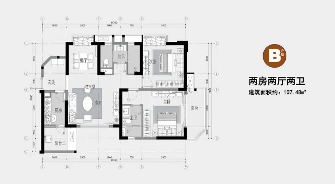 户型信息:主推建面约 101-123㎡的 2-3 房户型,包括 101㎡、107㎡的 2 室 2 厅 2 卫户型和 123㎡的 3 室 2 厅 2 卫户型,户型设计方正,南北通透,多为动静分离设计,部分户型采用双阳台布局。