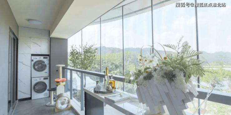 项目推出的低密湖山小高层产品,采用多飘窗、落地玻璃幕墙的设计,实现超高开窗比,部分户型配有270°天幕式L型景观阳台。