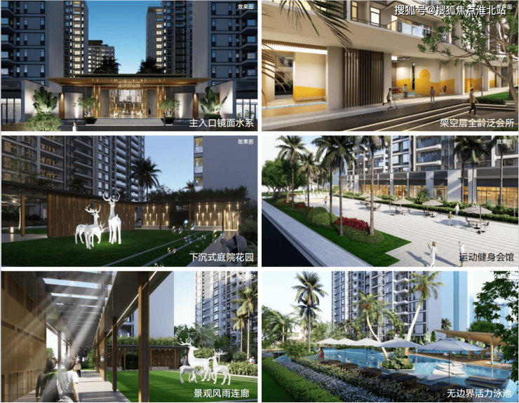 从入口景观中轴,到两翼五进景观设计、下沉式庭院花园与风雨连廊,将邻里空间、全龄化活动空间与活力运动空间有机串联,置身其中视野所及皆是美好。
