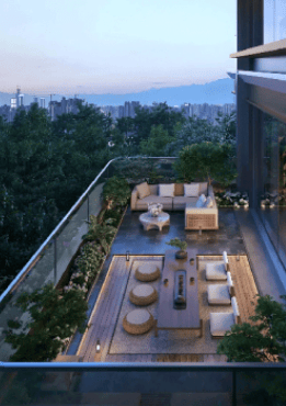 景观:规划了约 13 万方园林景观,接近 18 个标准足球场大小,种植近百种鲜氧绿植,采用全灌木移植,四季皆有景。