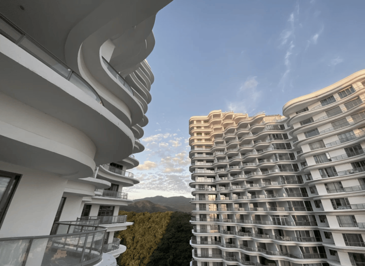 建筑风格:采用现代简约滨海风格,白色外观搭配流畅线条。小区规划将高层建筑有序排布成大组团院落,通过楼栋的错动与扭转,实现整体视线无遮挡,部分户型可拥有 90-270 度观海视角,通高阳台与落地窗设计,让室内与自然更亲近。