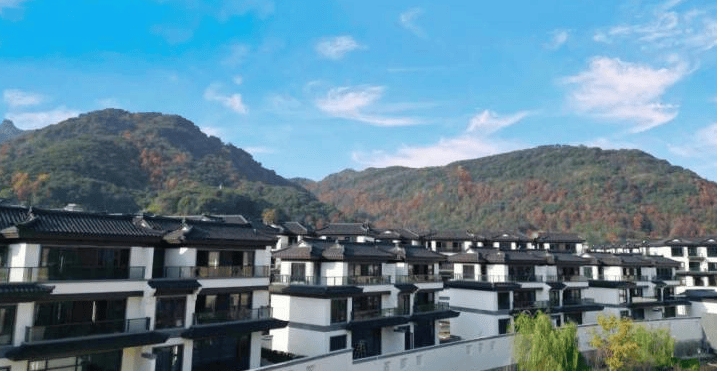 整体布局:项目由 35 栋建筑组成,包括双拼、三联、五联等多种排屋形态,顺应自然高差逐景而筑,在约 10 米原生台地之上,依山就势实现 “户户观山” 的剧院式视野。