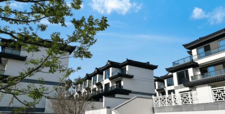 建筑风格:采用传统中式建筑风格,融合现代设计元素,外立面为经典的白墙黛瓦,采用小青瓦、石材勒脚、仿木铝合金等材质,搭配大面积落地玻璃窗,同时屋脊、栏杆、窗棂等采用宋风建制,充满中式韵味。