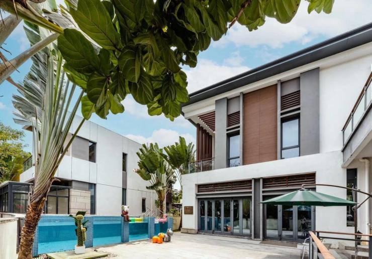 社区内部:热带风情园林、户外泳池、网球场、乒乓球场、健身房、儿童游乐区;酒店式入户大堂,外立面耐海风腐蚀。