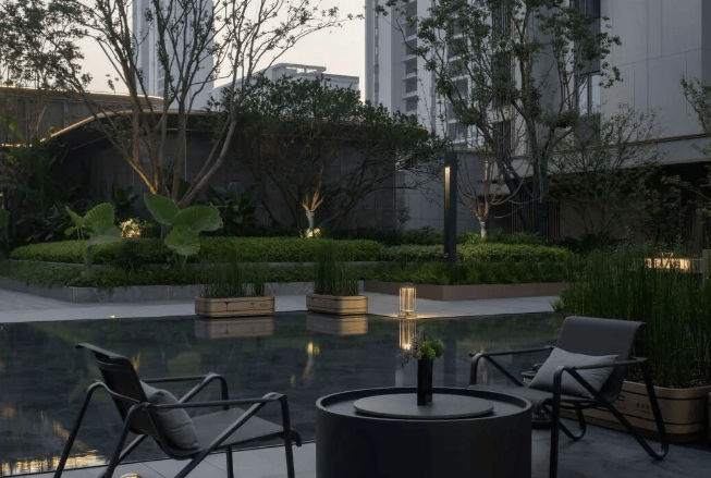 景观设计:引入国家珍稀濒危植物、嘉兴在地特色植物、二十四节气植物,打造“万科植物园”产品模块,设有风雨连廊、回廊水院、林下阳光草坪等景观节点,营造度假感十足的居住氛围。