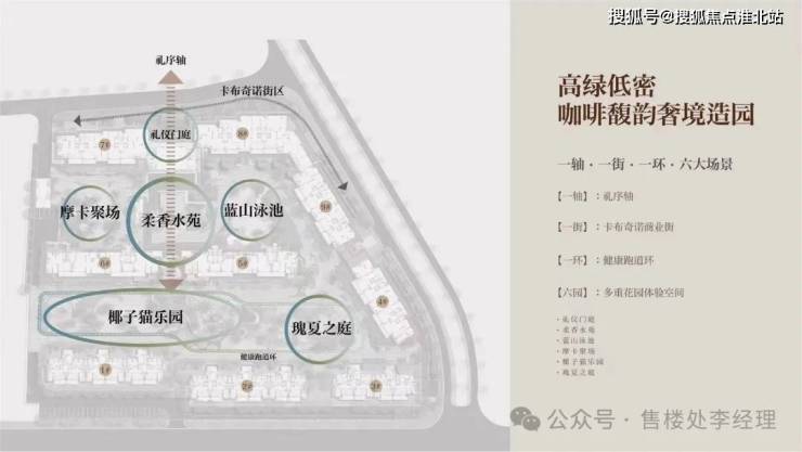 项目在设计上独具匠心,打造了 “一轴・一街・一环・六大场景” 的咖啡馥韵奢境园林。“一轴” 即礼序轴,彰显归家的仪式感;“一街” 为卡布奇诺商业街,充满浪漫风情;“一环” 是健康跑道环,满足业主日常运动需求;“六园” 包含礼仪门庭、柔香水苑、蓝山泳池、摩卡聚场、椰子猫乐园、瑰夏之庭,为业主带来丰富的花园体验空间,营造出高绿低密的舒适居住环境。