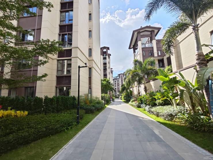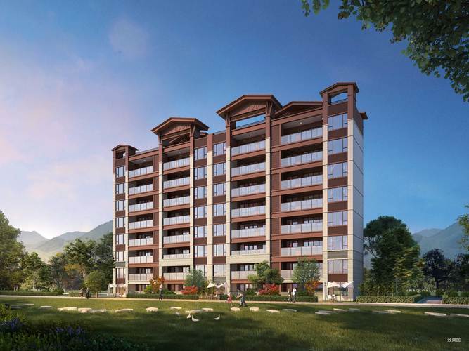 建筑风格:小区采用新亚洲风格式典雅建筑,背倚原生山林景观,打造高绿化率台地园林逸境。