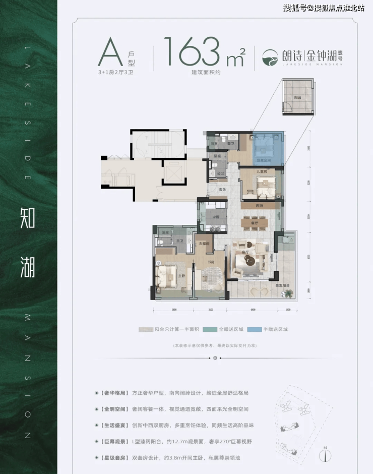 项目首推1栋138-163㎡产品,为一字板楼设计,南立面均匀,无论采光还是通风效果,都相当抗打!全新加推3栋94-115㎡