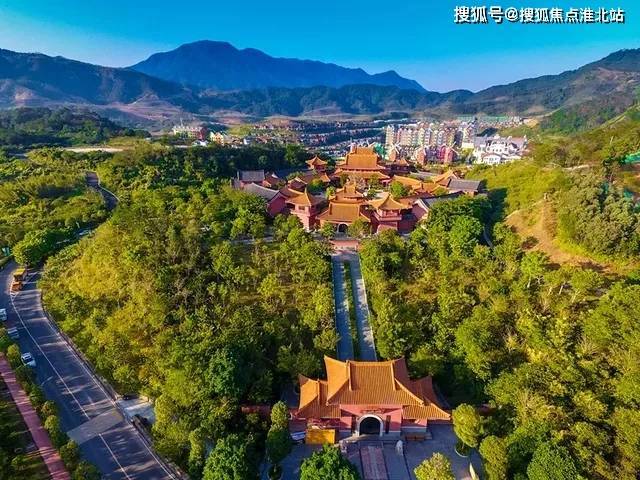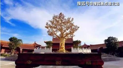 全球首座户外仿金铜铸金菩提圣树,树高13.7米,4800 片金叶子,运用18吨仿金铜铸造而成,取意释迦牟尼菩提树下悟道成佛典故。