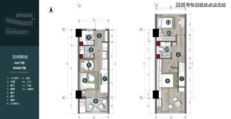 Ab户型:建筑面积约62㎡,套内面积约94㎡