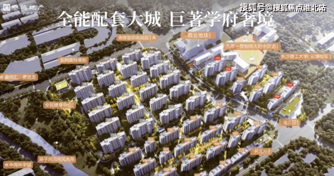 教育配套:项目自建 18 班幼儿园、6 班托儿所,规划配建九年一贯制师大附中系学校,学校领导班子等大多由本部选派而来,师资强大。周边还有长沙市长郡湘府中学、湖南师大附中双语树人学校等多所优质学校。